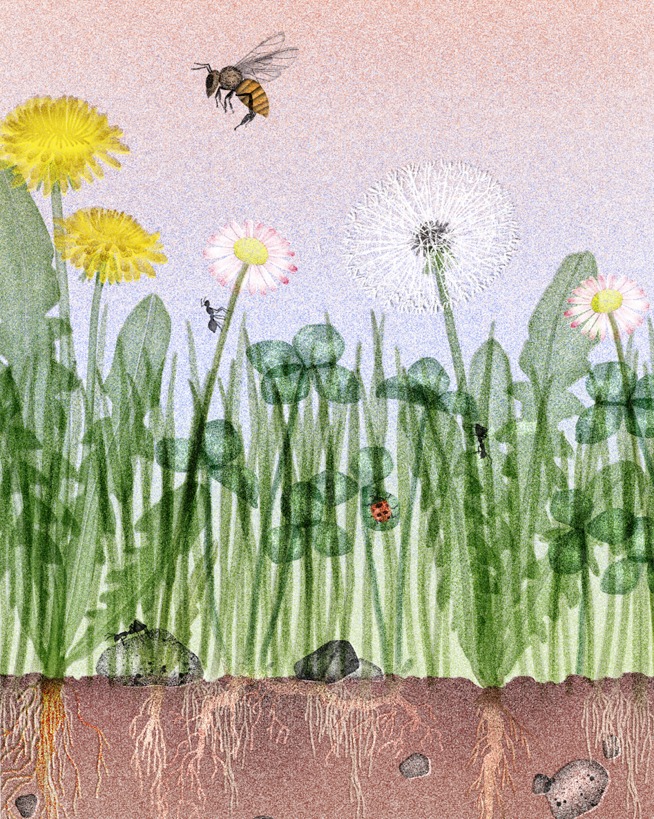 For most of my childhood, my father was at war on his quarter-acre plot, my childhood backyard. In some of my most vivid memories, he struggles with the lawnmower, sweat beading on his arm hair. He curses the crabgrass, he drenches dandelions and clovers with chemicals from white spray bottles he got at the hardware store down the street. It was an endless battle.