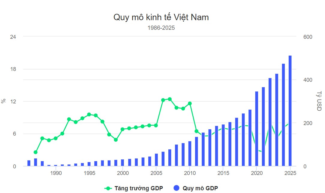 Từ 2016 đến nay, dù môi trường quốc tế biến động, tăng trưởng GDP bình quân vẫn duy trì 6,2%/năm. Quy mô nền kinh tế và thu nhập bình quân đầu người tăng gần gấp đôi, lên trên 510 tỷ USD và khoảng 5.000 USD/người; đời sống người dân cải thiện rõ rệt.